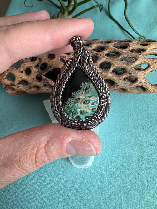 Rosetta Jasper Pendant in Antique Copper and Rose Gold