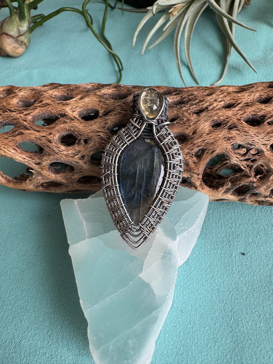 Weaved Blue Labradorite Pendant